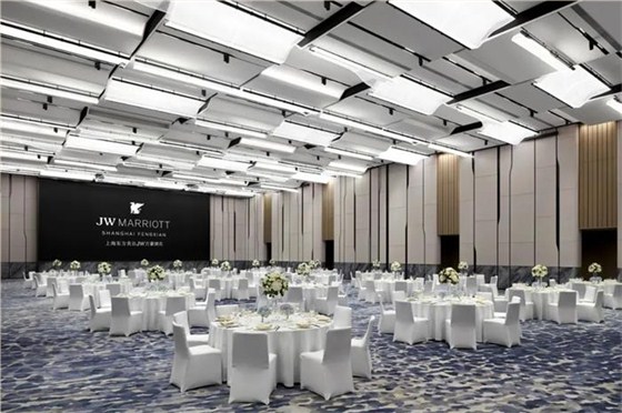 多功能廳可適用于各種慶典禮儀活動,比如舉行各種宴會、展覽會等。多功能廳設計要求是:首先,桌椅必須輕便、易變動,利于房間功能的快速轉變,舞臺也要可以活動,能夠升降與拆裝,以適應室內空間的不定性要求;其次,需要安裝現代化的聲像設備,比如幻燈、投影儀、錄音錄像和調光系統等,以滿足不同的使用要求。